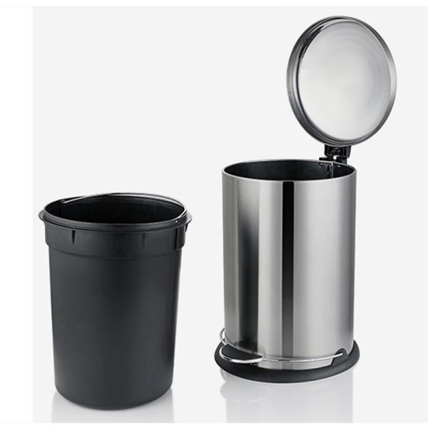 Anti-fingerprint - The container’s stainless steel construction is fingerprint-proof, smudge-resistant, lightweight, and durable. Featuring a heavy-duty plastic interior bucket that can be easily removed for trash disposal. Includes non-slip rubber pads on the bottom and a flat stainless steel pedal.